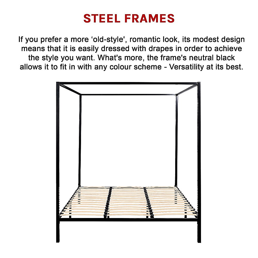 This four poster bed combines classic elegance with modern design, making it a versatile addition to any bedroom. Its simple yet stylish appearance allows for easy customization with drapes or other decorative elements, fitting seamlessly into various decor styles. The sturdy construction ensures durability and stability, providing a luxurious and comfortable sleeping experience.