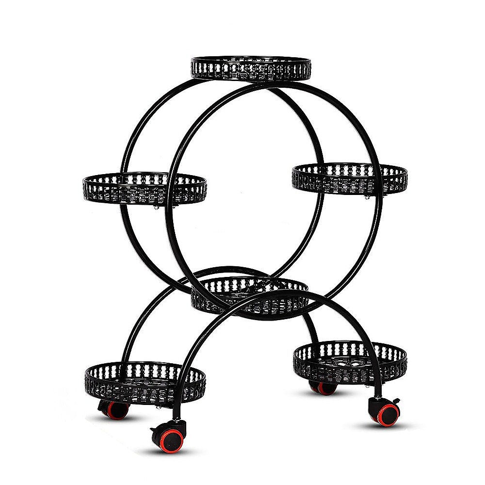 4 Layer 6 Pots Flower Holder Plant Stand Shelf 4-Wheel Free Moving Rack