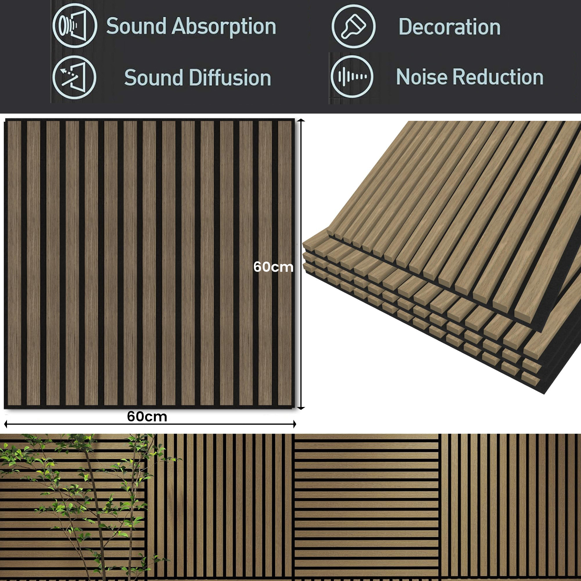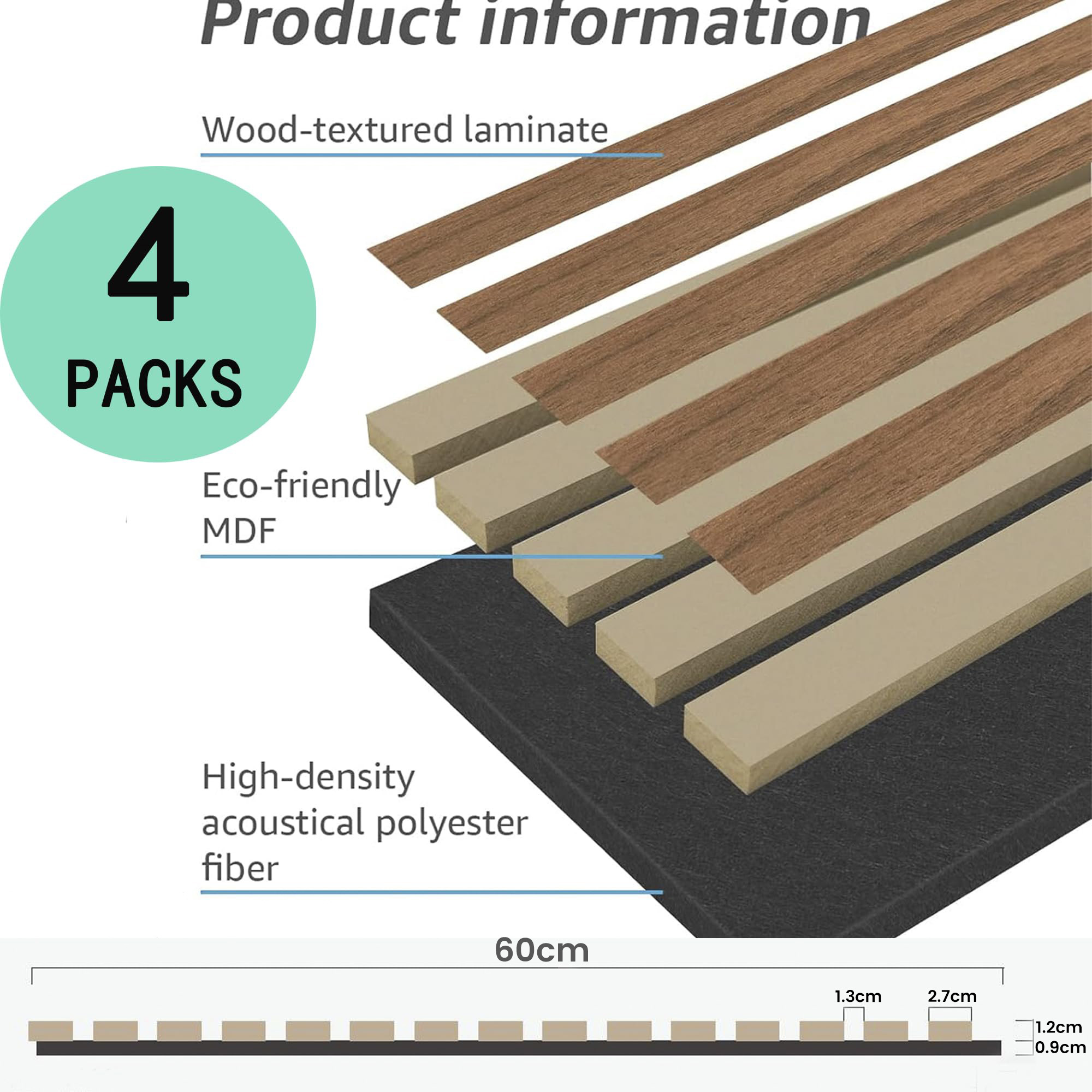 4 Pcs 60cm x 60cm Wall Panel Wood Slat Acoustic Panels Sound Absorbing Proof Panel for Wall Ceiling Decorative Walnut