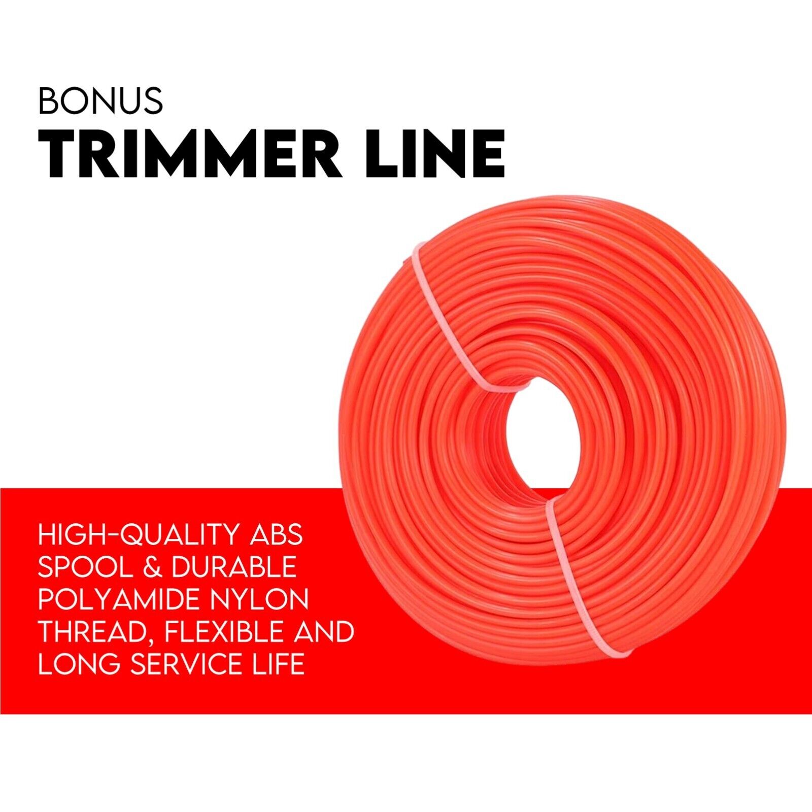 - Professional-grade nylon trimming line for sharp edges and clean results