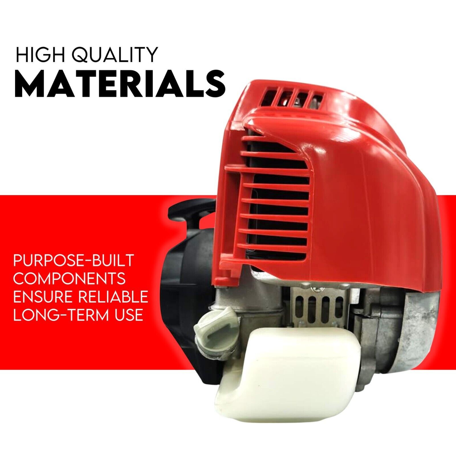 This 4-stroke engine motor is designed for use with brushcutters, trimmers, and other hand-held power equipment. It features smooth starting, excellent acceleration, and efficient fuel and oil consumption. The engine’s construction reduces mechanical noise and vibration, providing a reliable and comfortable operation experience. Its full-cover design helps prevent snagging on branches or other objects during use.