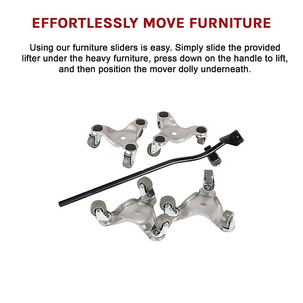 This all-purpose furniture mover set is designed to facilitate the easy loading and transportation of heavy furniture items. Suitable for moving sofas, cabinets, beds, refrigerators, and other large objects, these sliders help users move furniture independently and reduce manual effort and labor costs.