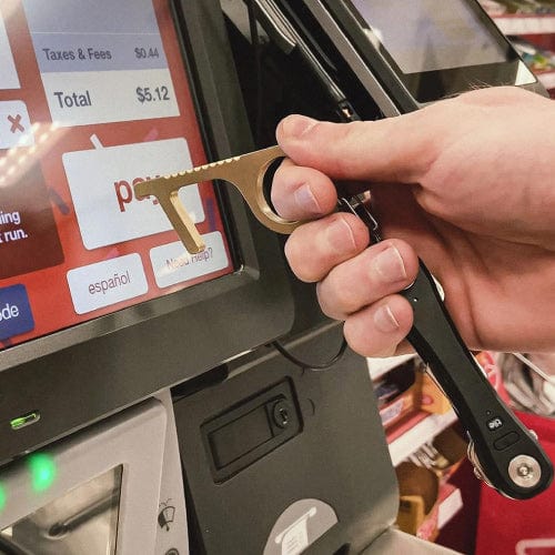 This hygiene key is designed to minimize contact with public surfaces, helping to reduce the spread of germs. Made from durable antimicrobial brass alloy, it effectively kills germs within hours. Its ergonomic design allows for easy operation of doors, buttons, and levers, promoting safer interactions in public spaces.