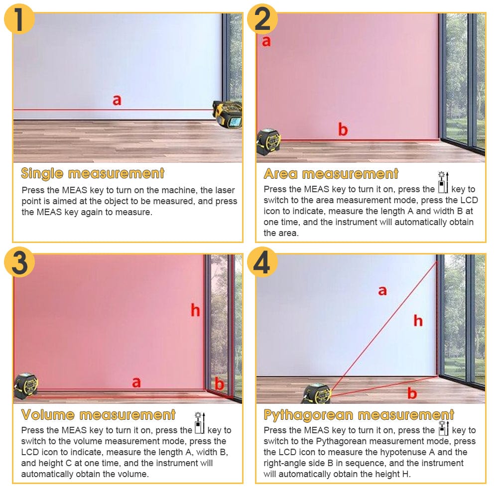 - Laser measure / cross-line laser level / tape measure device