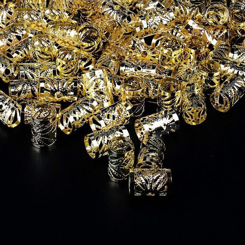 This set includes 40 gold-colored hair braid cuff clips designed to add a stylish and decorative touch to various hairstyles. These adjustable accessories are suitable for dreadlocks, box braids, twists, and faux locs, making them ideal for festivals, parties, photo shoots, or creative styling.