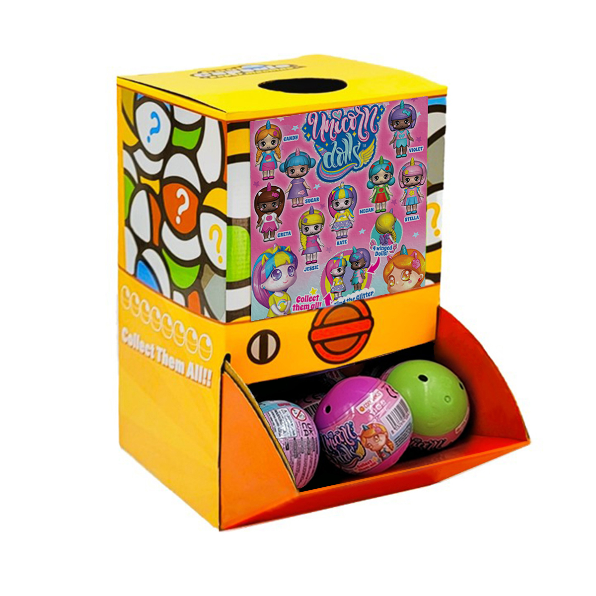 This set includes a collection of collectible unicorn doll capsules, designed for display and play. The vibrant and adorable designs make these figures appealing for both children and collectors. The display box allows for easy organization and stacking, making it suitable for retail, trade shows, or home collections. These charming dolls are perfect for brightening up any space and inspiring imaginative role play.