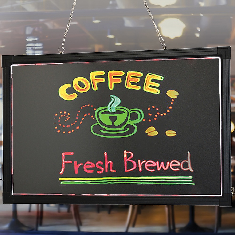 - Includes: Power adapter, 8 LED fluorescent markers, cleaning cloth, USB booster, hanging chain