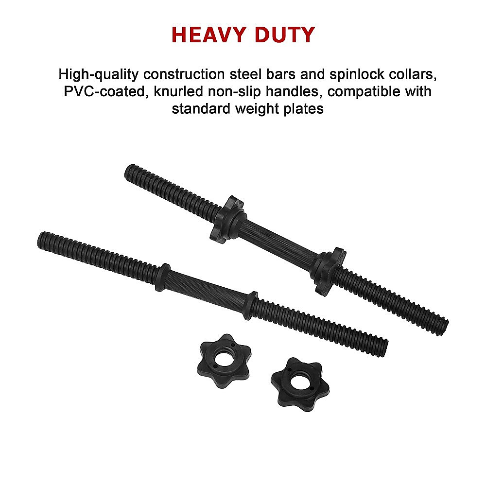 This set of high-quality dumbbell bars features a PVC-coated steel handle designed for a secure grip. Each bar measures 45cm in length with a diameter of 25mm, making them suitable for various fitness routines including weightlifting, bodybuilding, and cross training to enhance upper body strength.