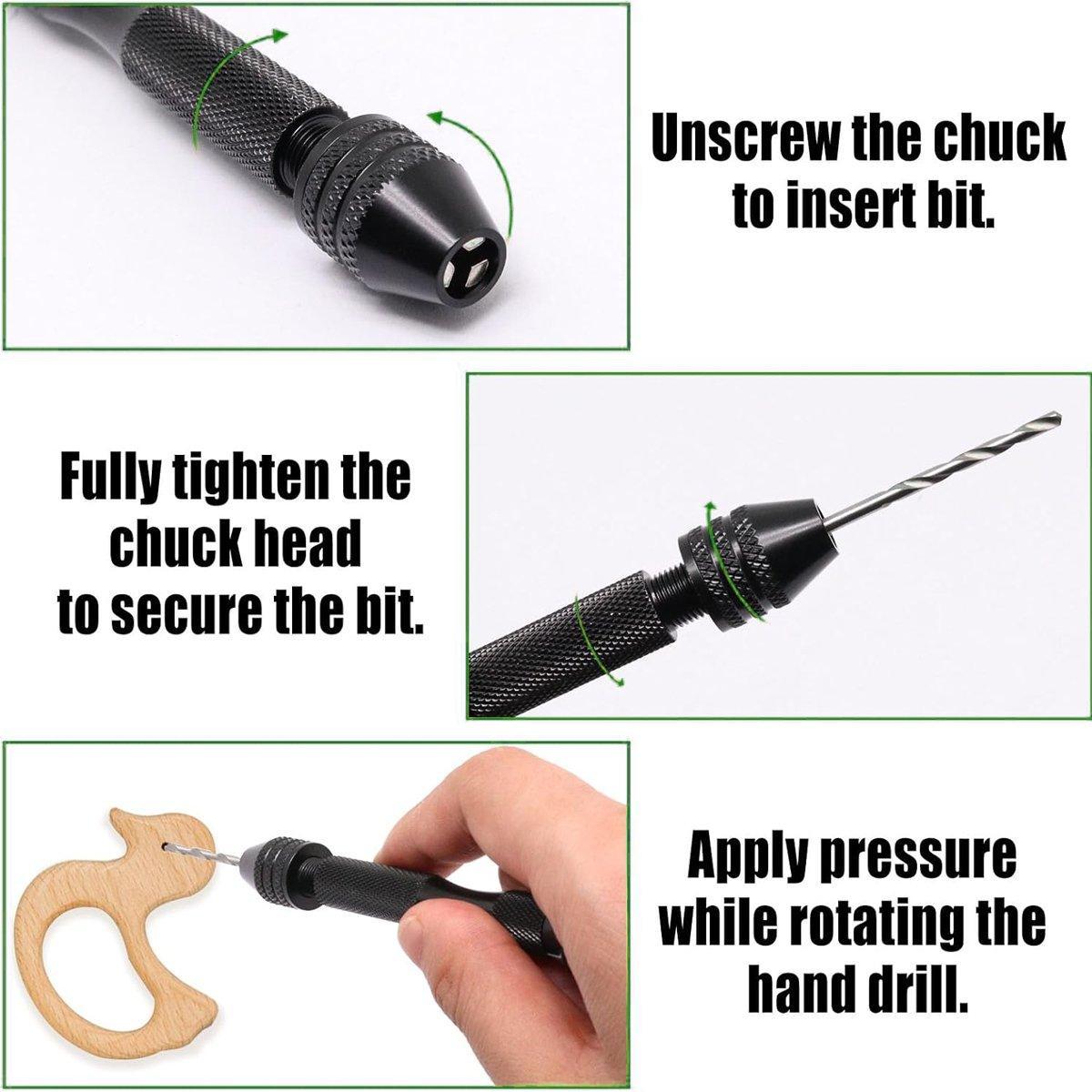 This set includes a mini hand drill and a variety of high-speed steel twist drill bits, designed for precise woodworking and crafting tasks. The tools are compact, portable, and suitable for detailed work, making them ideal for hobbyists and professionals alike.