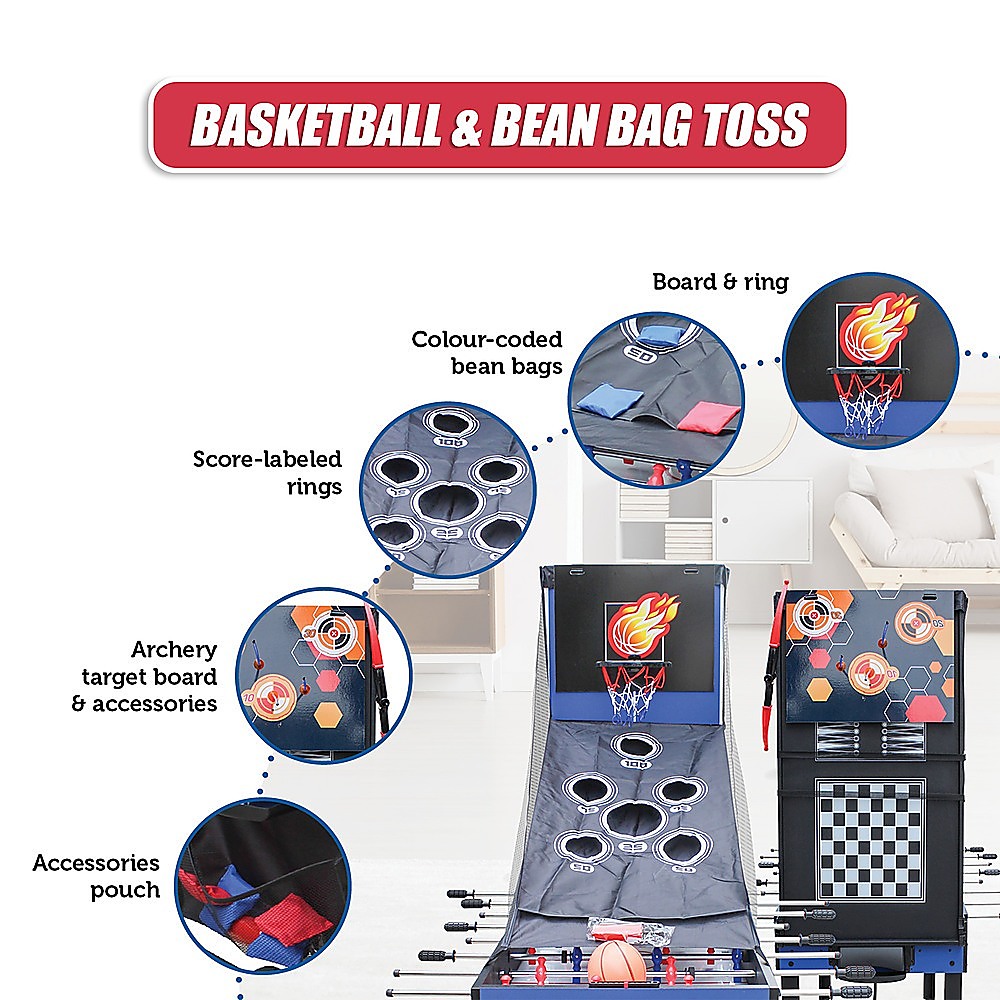 This versatile 12-in-1 game table offers a compact solution for multiple entertainment options in a limited space. It allows you to enjoy a variety of games including foosball, soccer, basketball, hockey, pool, table tennis, archery, checkers, chess, backgammon, dice, and bean bag toss, all on one sturdy table. The set is designed for easy switching between games, making it suitable for family fun and entertainment in smaller homes or kids’ rooms.