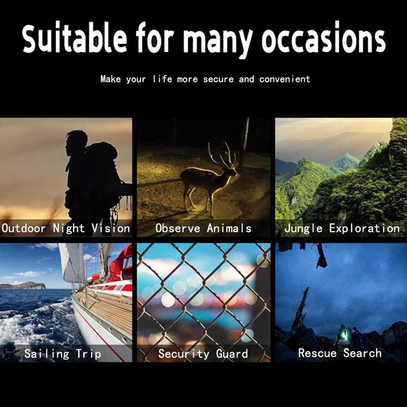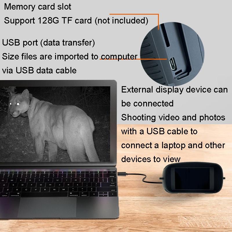 This night vision telescope offers high-resolution imaging and versatile functionality for outdoor and nighttime observation. It features multiple photo and video resolution options, a wide aperture, and various white balance modes to adapt to different lighting conditions. The device is equipped with a built-in rechargeable battery, digital zoom, and a clear LCD display, making it suitable for extended use in diverse environments.