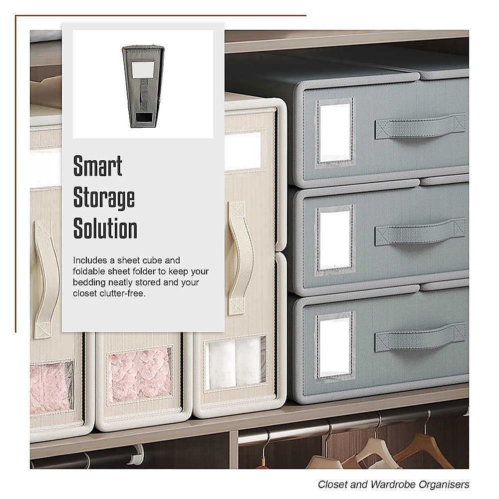 • Includes a sheet cube and foldable sheet folder for efficient storage