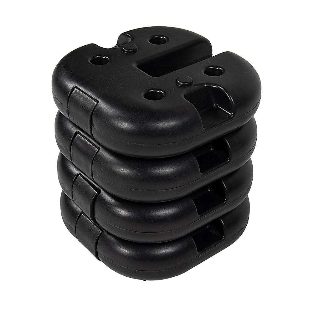 This set of four outdoor canopy tent leg weights provides a reliable solution to secure your outdoor shelter against strong winds. Made from durable cement with a waterproof rubber coating, these weights are designed to keep tents, canopies, and gazebos stable and in place during various weather conditions. Their heavy-duty construction ensures long-lasting performance, while their neutral black color complements any outdoor setup. Easy to handle and install, these weights are suitable for all types of frames and surfaces, offering a practical and secure anchoring option for outdoor events and activities.