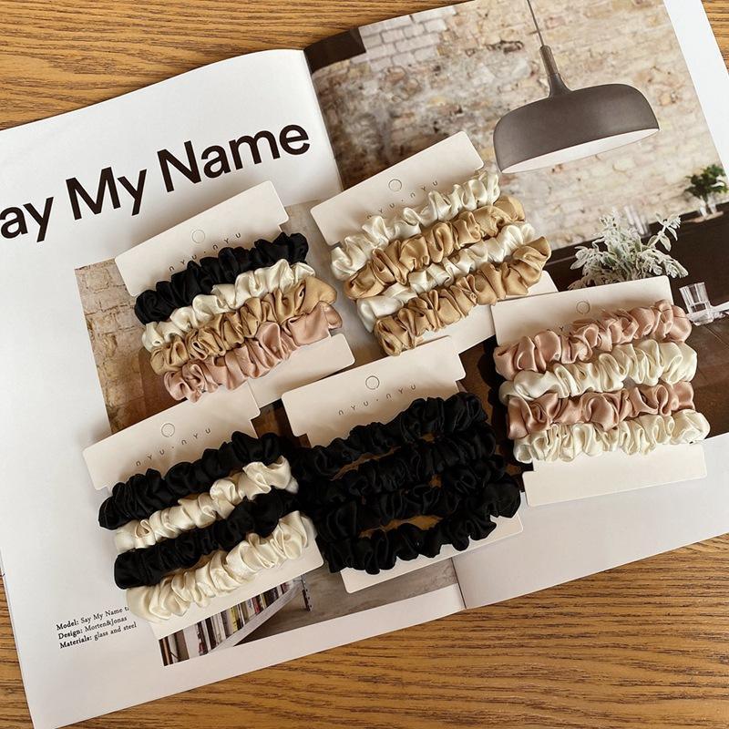 4Pcs/Set Silk Satin Small Scrunchies Ponytail Hair Ties Hair Rope Rubber Bands – A