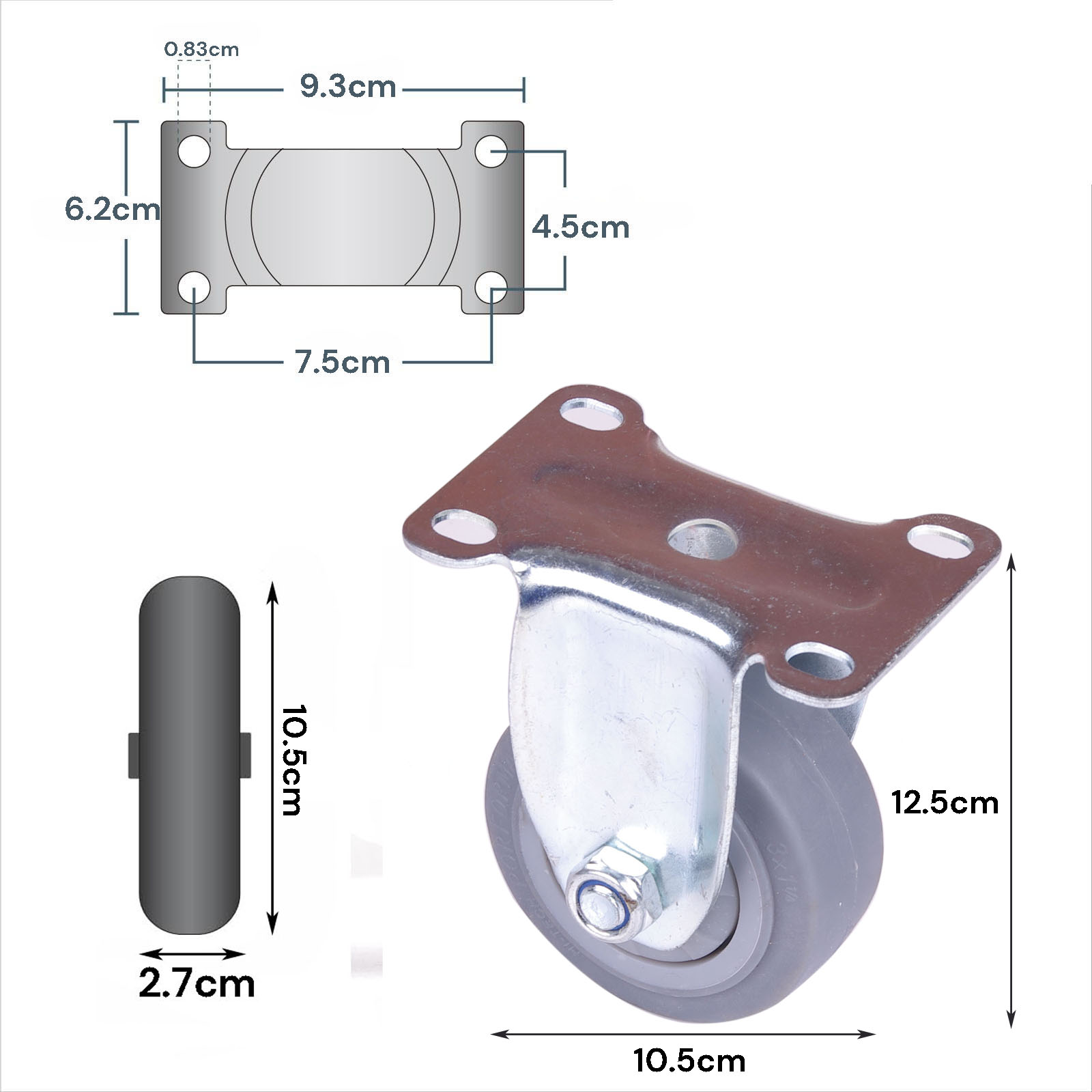• Wheel size: 4 inches (12.5cm diameter)