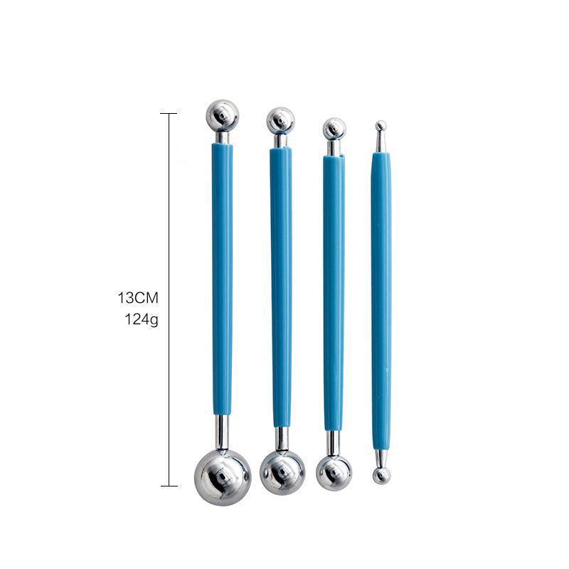 4X Fondant Cake Flower Decorating Clay Sugarcraft Ball Engraved Embossing Stick – Hot pink