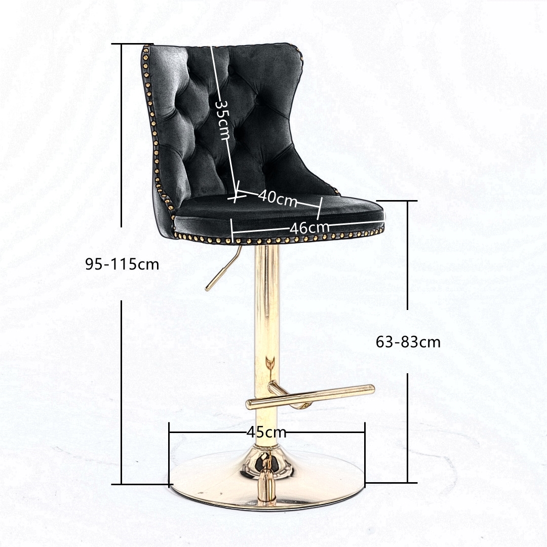 4x Height Adjustable Swivel Bar Stool Velvet Studs Barstool with Footrest and Golden Base- Black