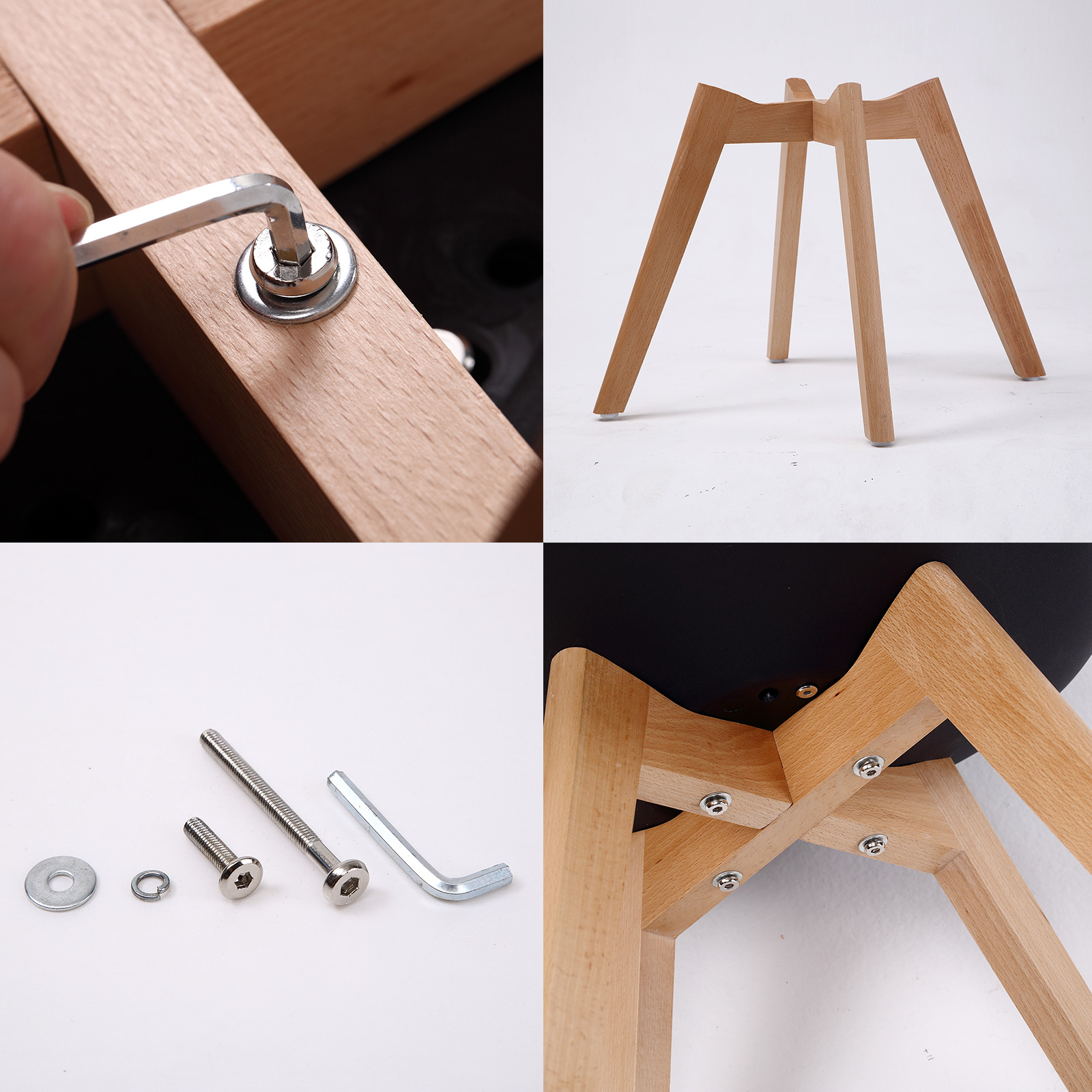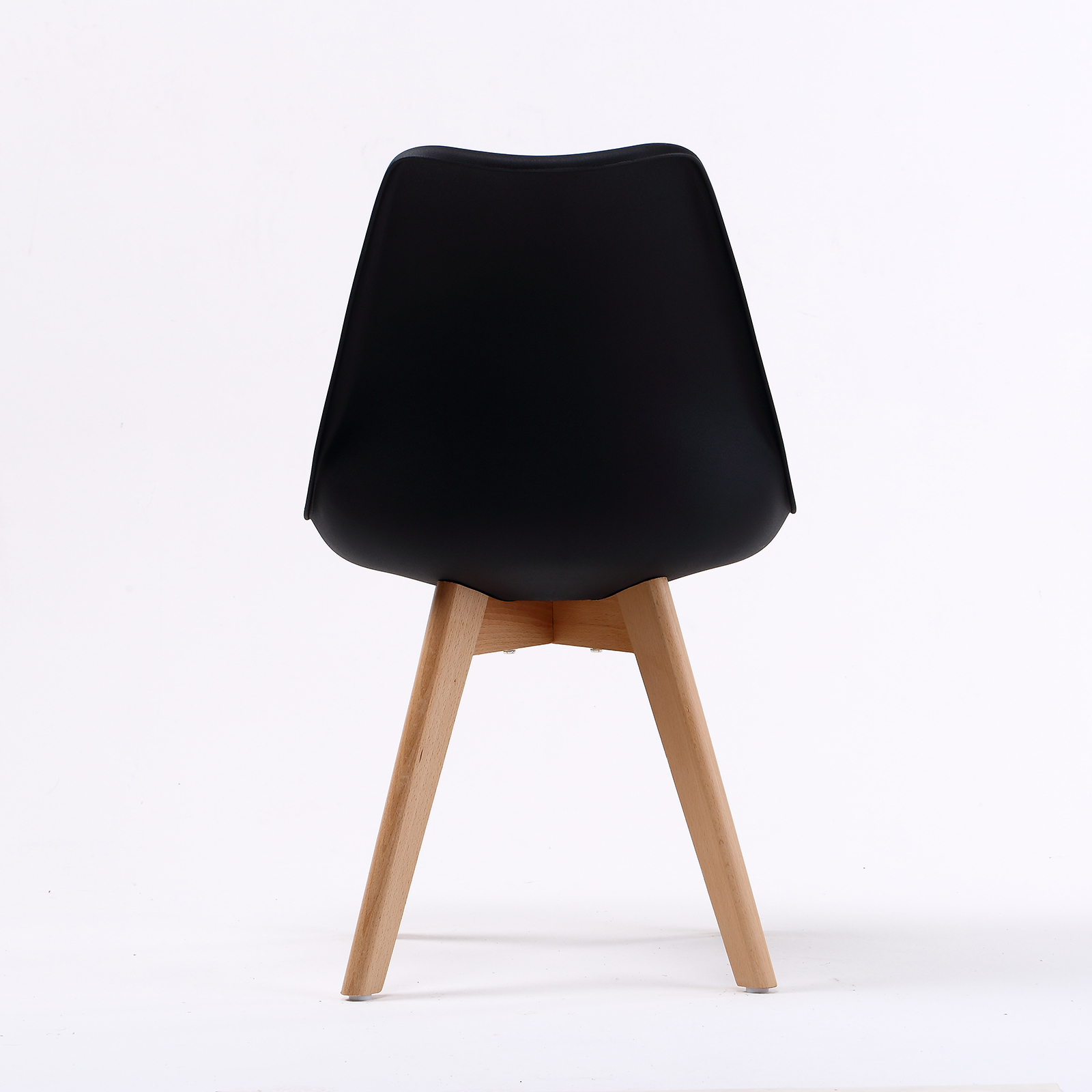 This set of four retro dining cafe chairs features a sleek and minimalistic design that adds a stylish touch to any space. The chairs are suitable for use in homes, offices, or cafes, offering both comfort and durability with their padded seats and sturdy wooden legs.