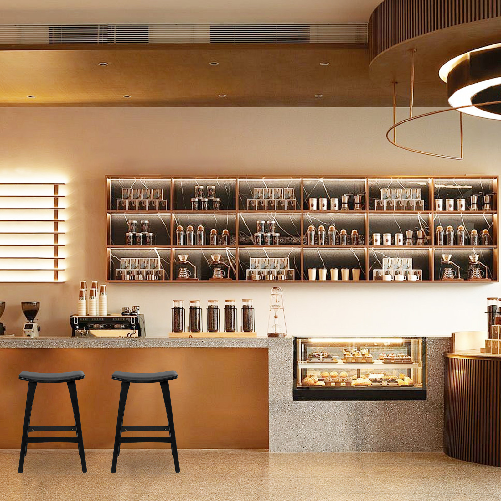Constructed from durable plywood with padded PU leather seats, these stools offer both style and comfort. The gently curved seats provide a comfortable sitting experience, while the wide-to-narrow leg design ensures stability and visual appeal. The smooth finish makes them easy to maintain and suitable for different environments.