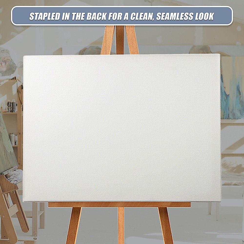 This set includes five blank stretched canvases, each measuring 50x60cm. Made from high-quality cotton and mounted on sturdy timber frames, these canvases provide a reliable surface for painting. They are suitable for various artistic mediums and are primed and ready for use, making them ideal for both professional artists and hobbyists.