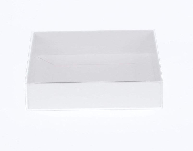 50 Pack of White Card Square Box - Clear Slide On Lid - 20 x 20 x 8cm - Large Beauty Product Gift Giving Hamper Tray Merch Fashion Cake Sweets Xmas