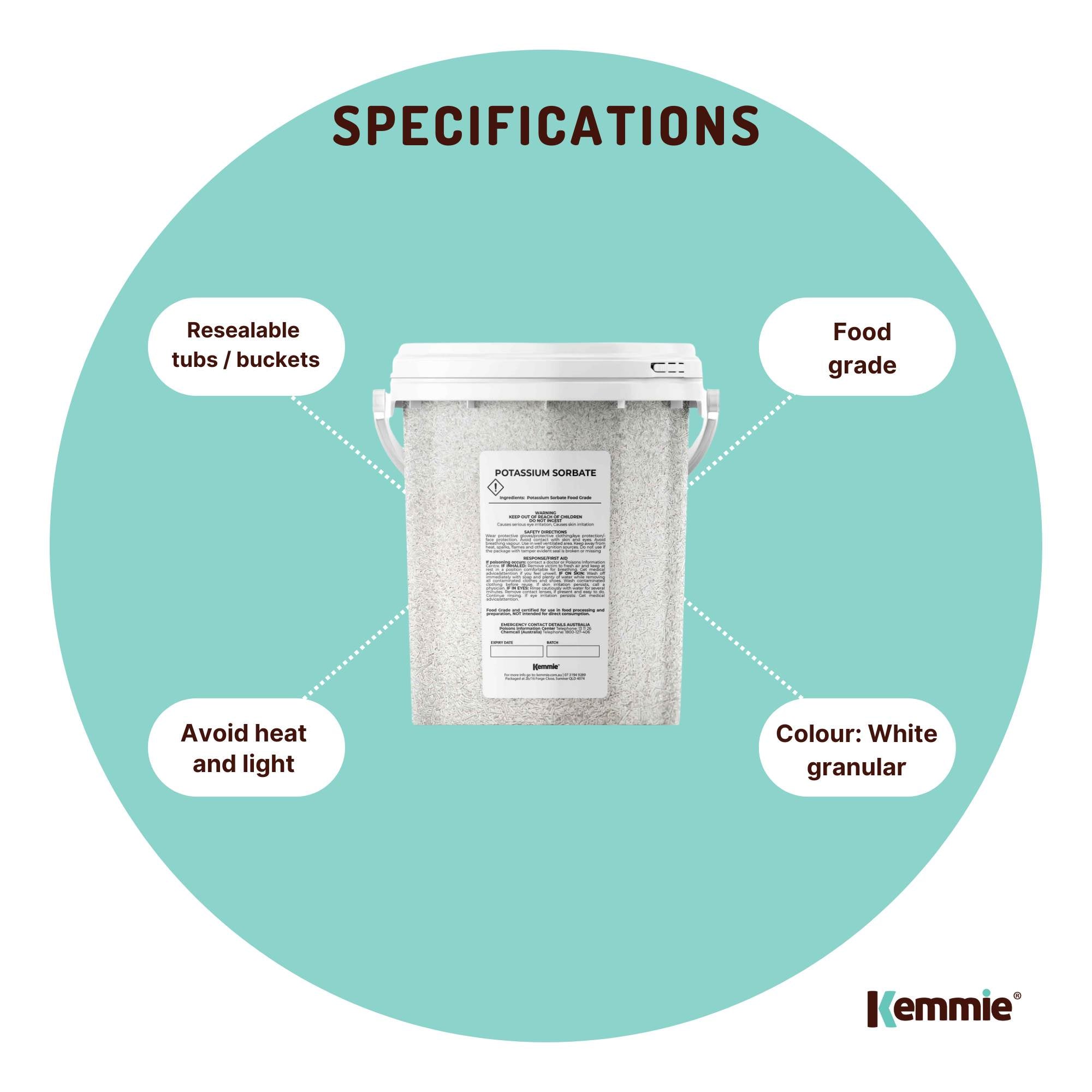 This product is a food-grade preservative in the form of potassium sorbate granules. It is used to inhibit the growth of mold, yeast, and bacteria in various food and cosmetic products, thereby extending shelf life. It also functions as a wine stabilizer and is suitable for use in herbal dietary supplements.