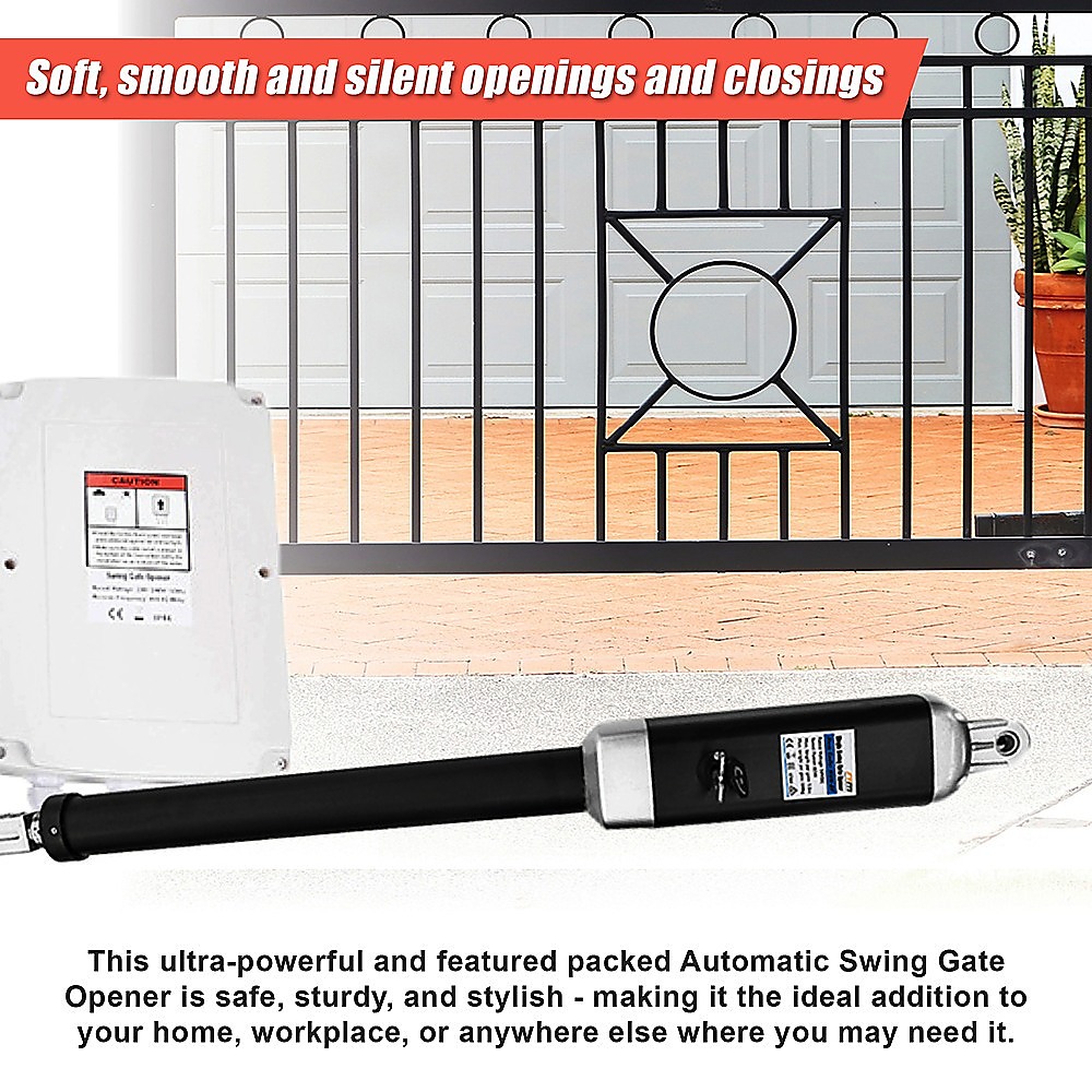 This automatic swing gate opener is designed to provide a safe, durable, and stylish solution for controlling gate access. It features powerful motors and a robust construction, making it suitable for various residential and commercial applications.