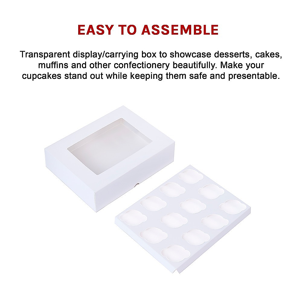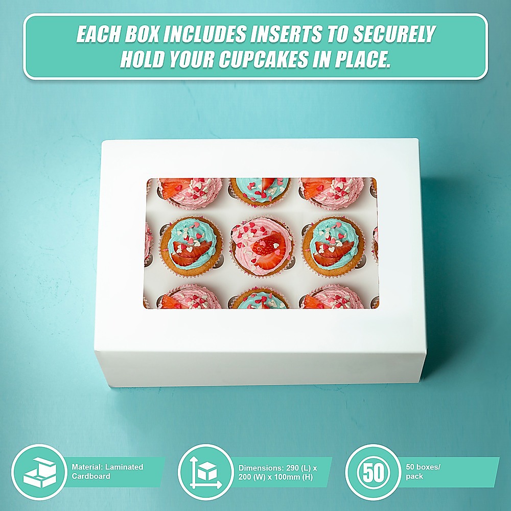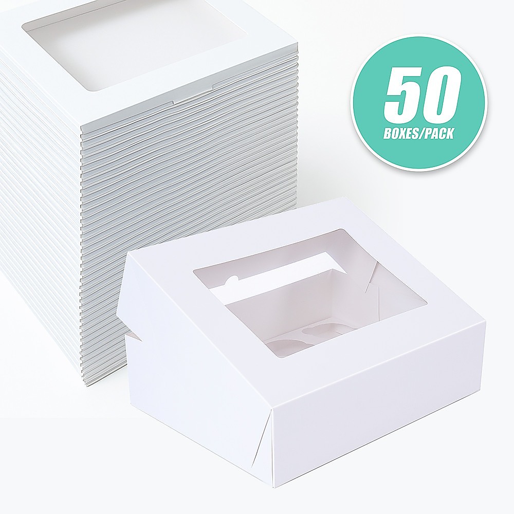 50pcs Cupcake Boxes 12-Hole Laminated Clear Window Face Boxes Favour