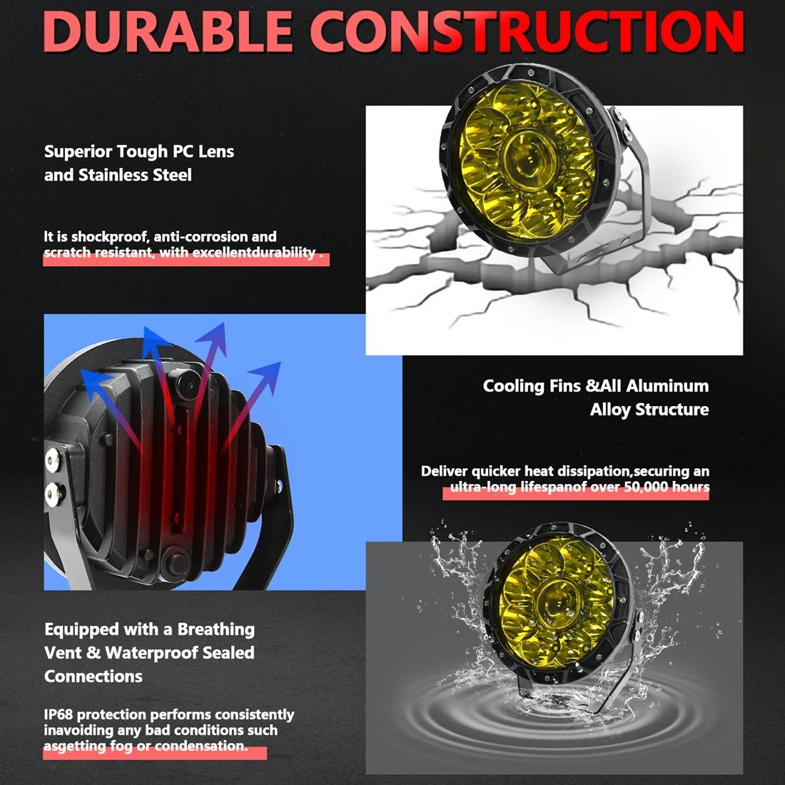 55W 6000Lm / 6000K Off – Road Vehicle Round Work Light – Yellow