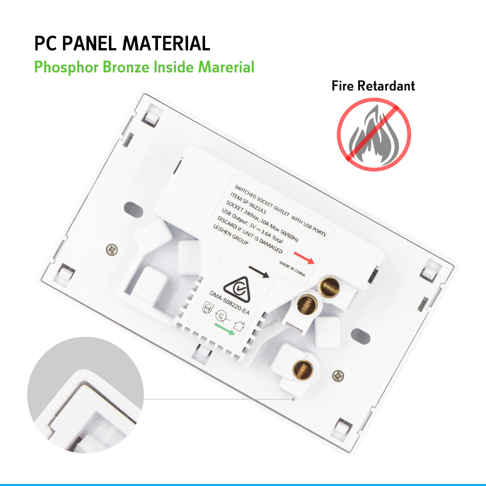 5PCS Double Power Point Dual USB+Type-C GPO Fast Charge 3.6 amp Wall Outlet