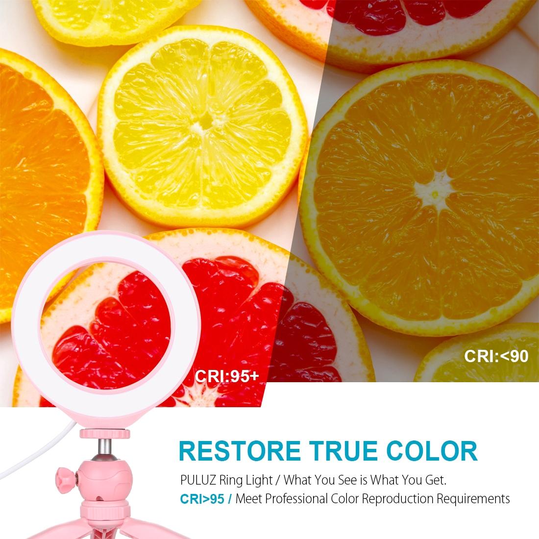 6.2 Led Ring Light with Usb 3 Modes Dimmable Cold Shoe Tripod Mount – Pink