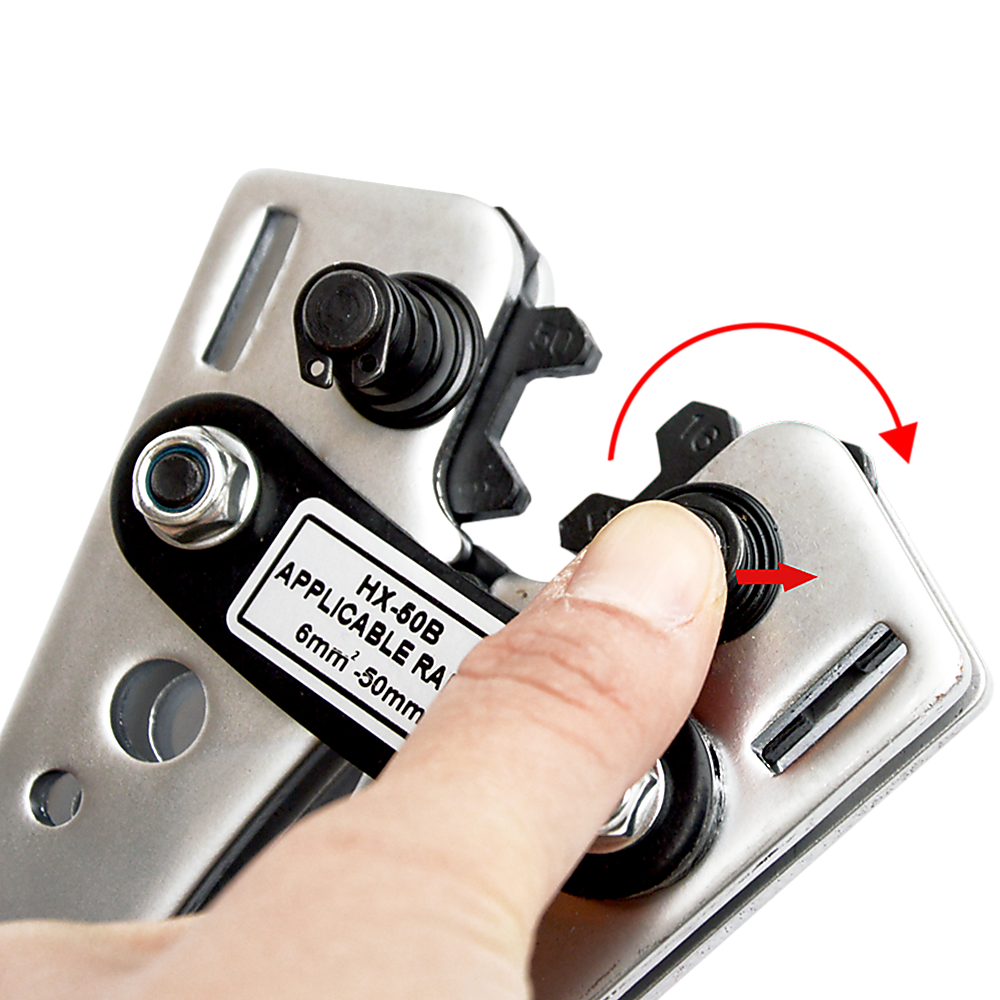 - Adjustable crimping sizes for wires from 6 mm2 to 50 mm2