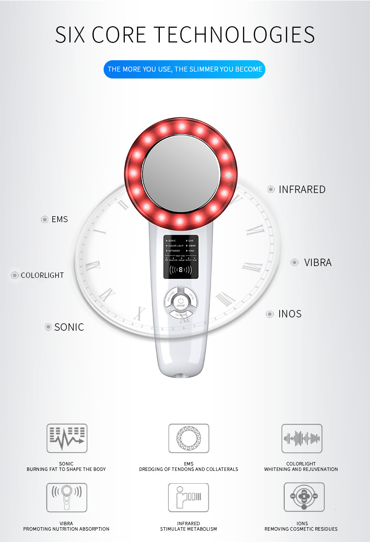 This device combines six advanced technologies to provide comprehensive body slimming and skin rejuvenation treatments. It is designed to reshape and brighten the skin, offering a versatile solution for beauty enhancement at home.