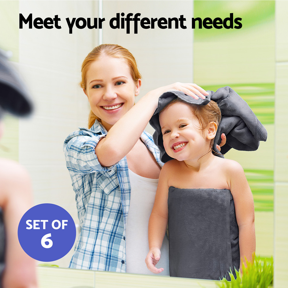 6 Pack Bath Towels Set Cotton Towel Grey