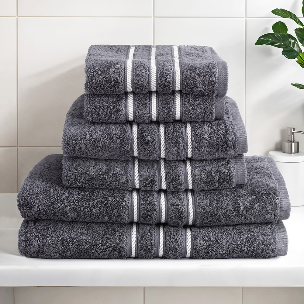 Experience spa-like comfort at home with this 6-piece bath towel set. Crafted from 100% cotton with a plush 650gsm weight, these towels provide softness, breathability, and durability. The set includes bath towels, hand towels, and washcloths, all designed for everyday use with quick-drying and highly absorbent features. Elegant border details enhance the aesthetic appeal, making them a practical and stylish addition to your bathroom.