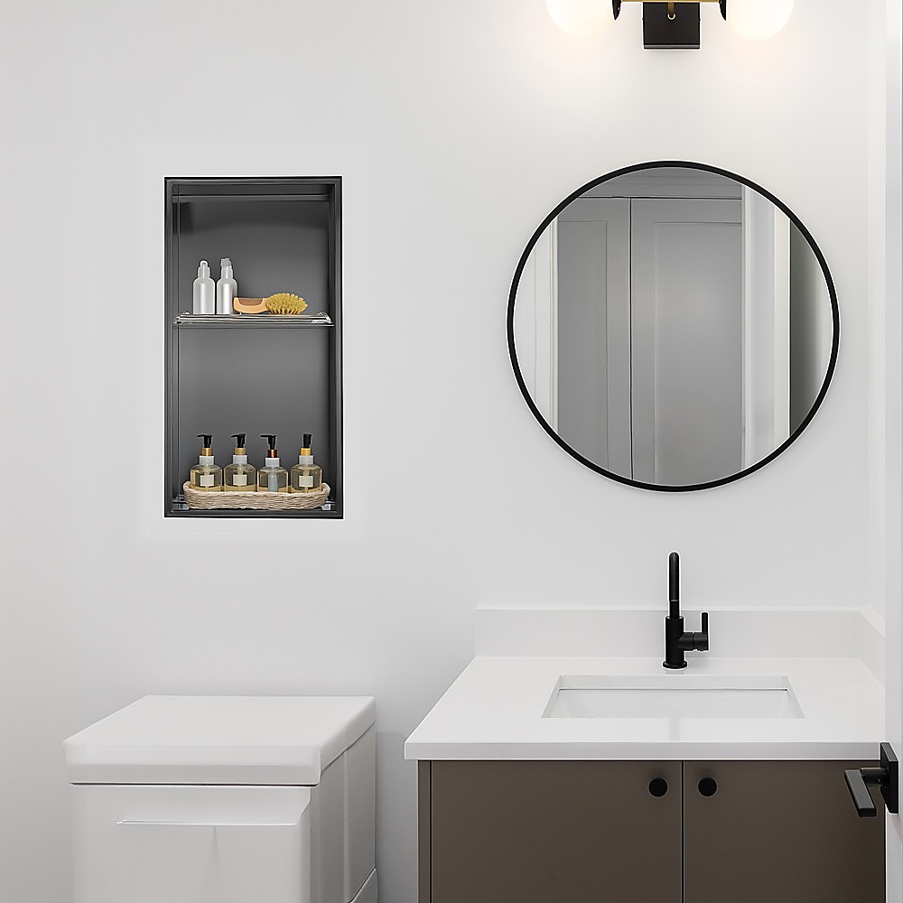 This shower niche double shelf organizer offers a sleek and practical storage solution for your bathroom. Designed to be installed without tiles, it features two spacious shelves to hold your toiletries and shower products, combining modern aesthetics with functional convenience.