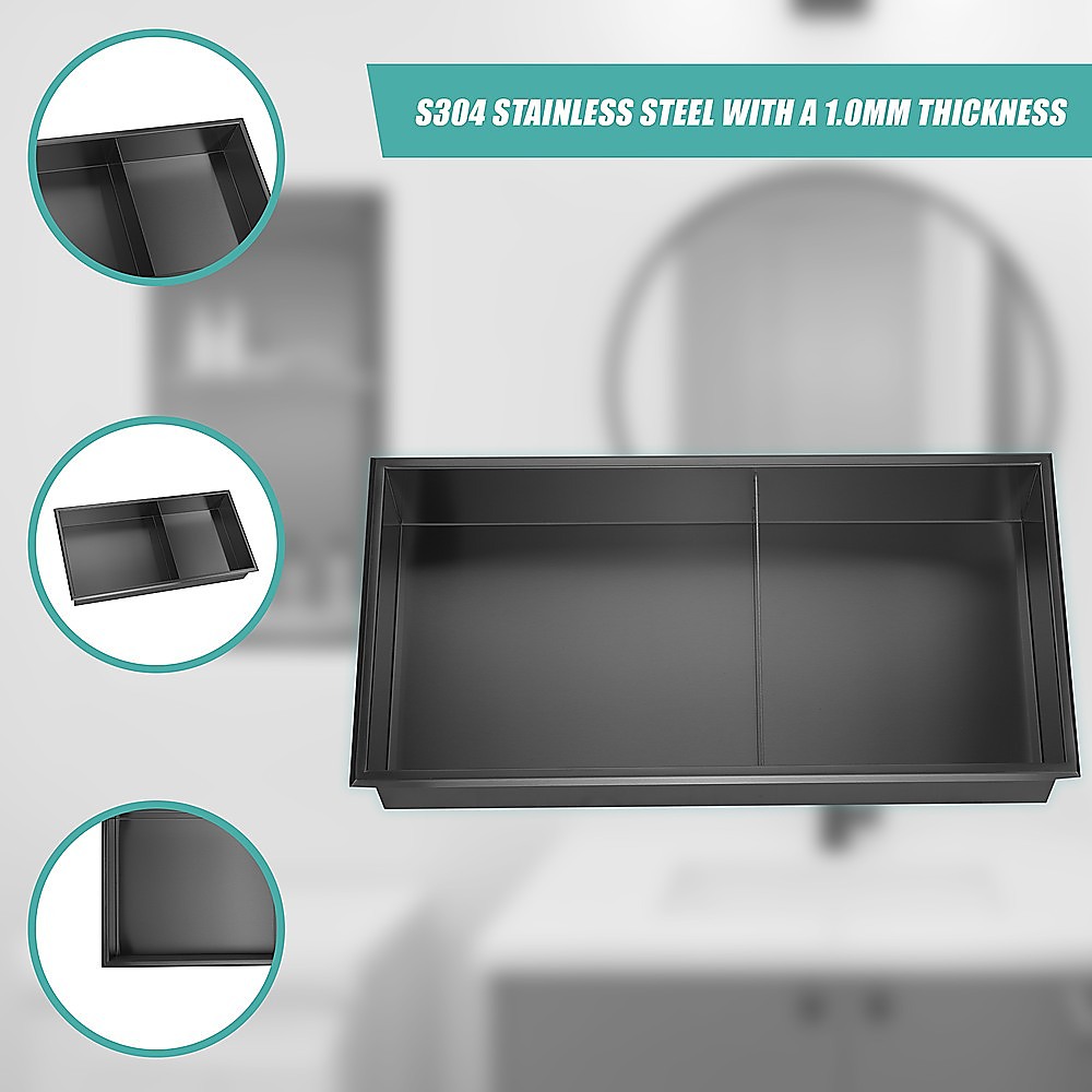 641 x 336 x 101mm Shower Niche Double Shelf Organizer No Tile Needed in Black