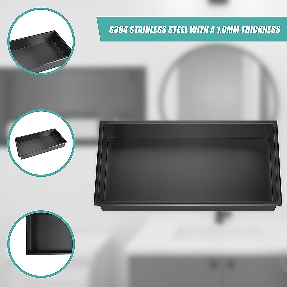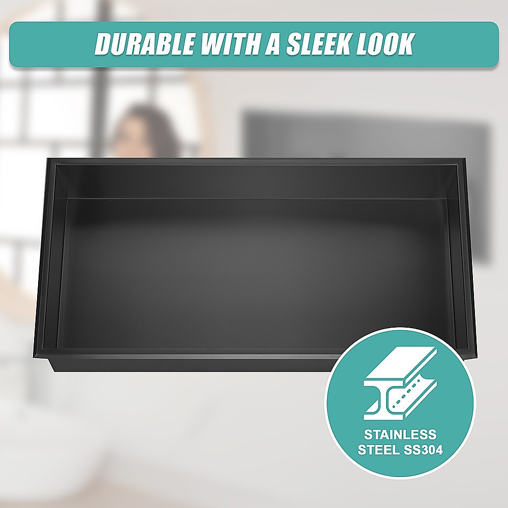 641 x 336 x 101mm Shower Niche Single Shelf Organizer No Tile Needed in Black