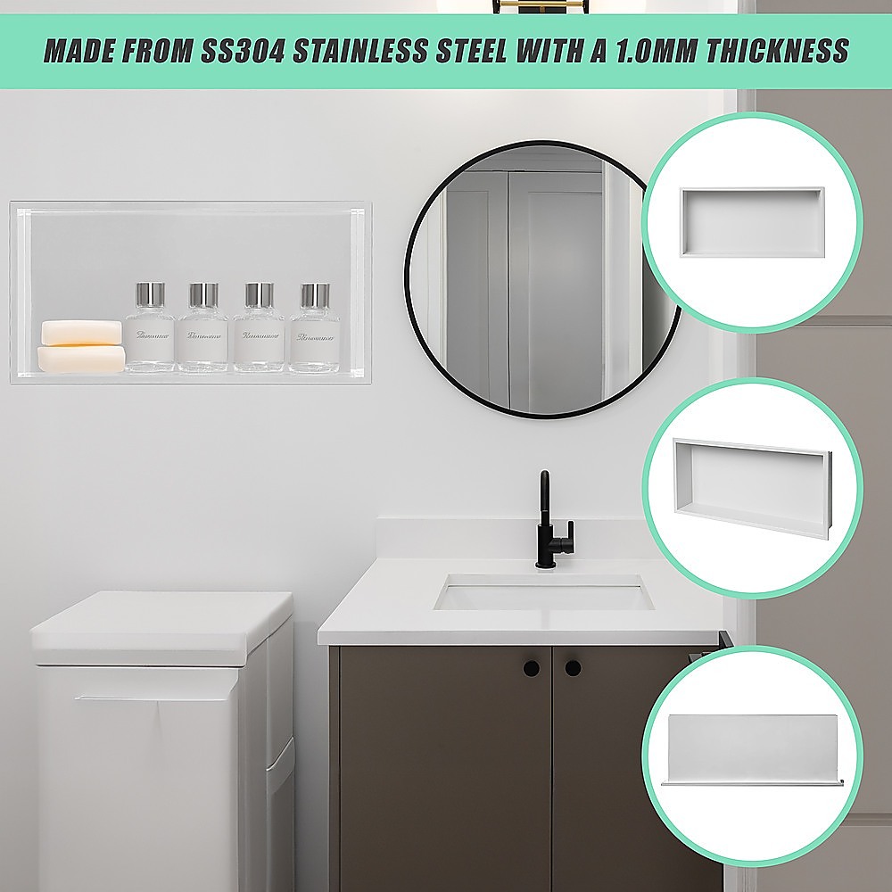 641 x 336 x 101mm Shower Niche Single Shelf Organizer No Tile Needed in White