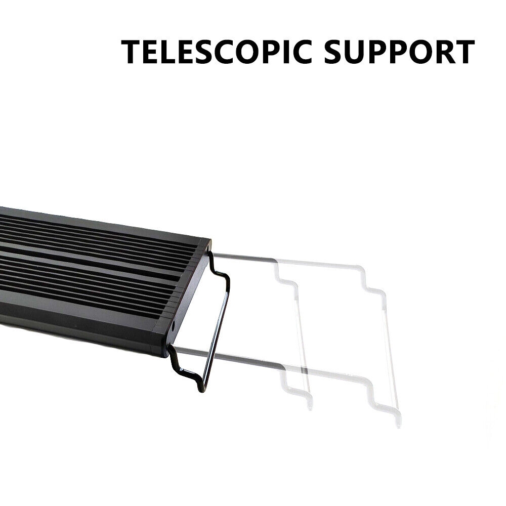 This aquarium LED light provides full spectrum lighting suitable for both freshwater and saltwater aquatic plants. It features energy-efficient LEDs with increased brightness and a durable aluminum alloy construction, making it lightweight and long-lasting. The light promotes healthy growth of fish, coral, and plants while offering adjustable settings for optimal illumination.