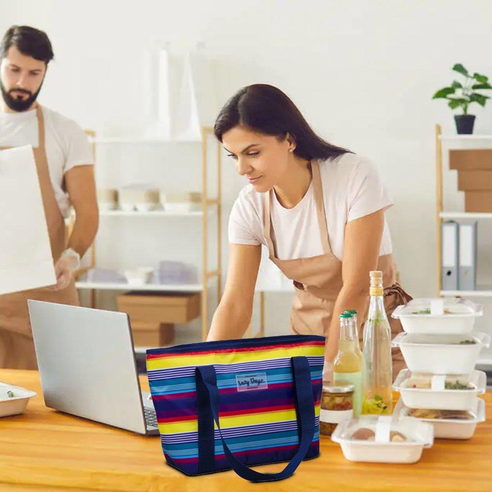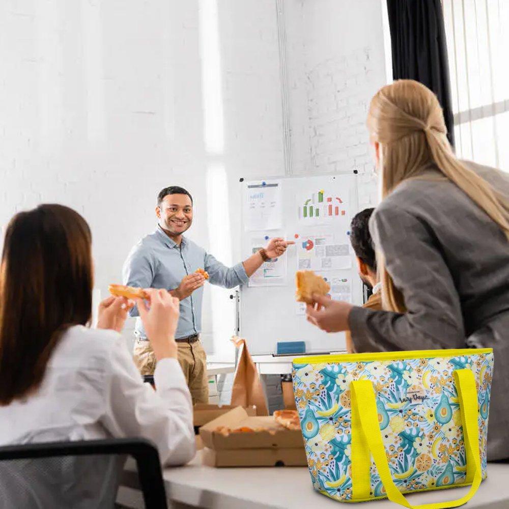 This insulated jumbo cooler tote offers a spacious and stylish solution for carrying food and beverages. Its large capacity and durable design make it ideal for picnics, grocery shopping, and outdoor activities, keeping items cold or warm for hours.