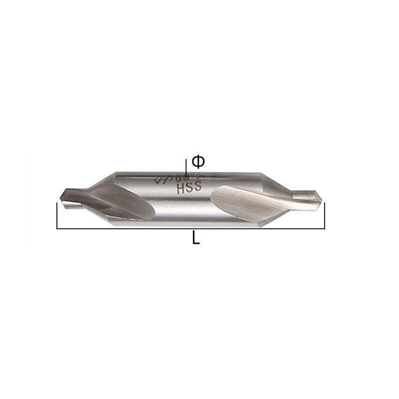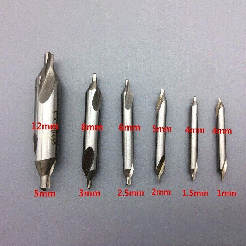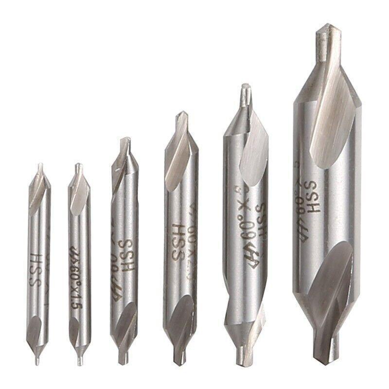 This set includes six combined center drill and countersink bits designed for precise machining tasks. These high-speed steel bits are suitable for creating tapered holes and center holds in various workpieces, ensuring accurate starting points for drilling and machining operations.