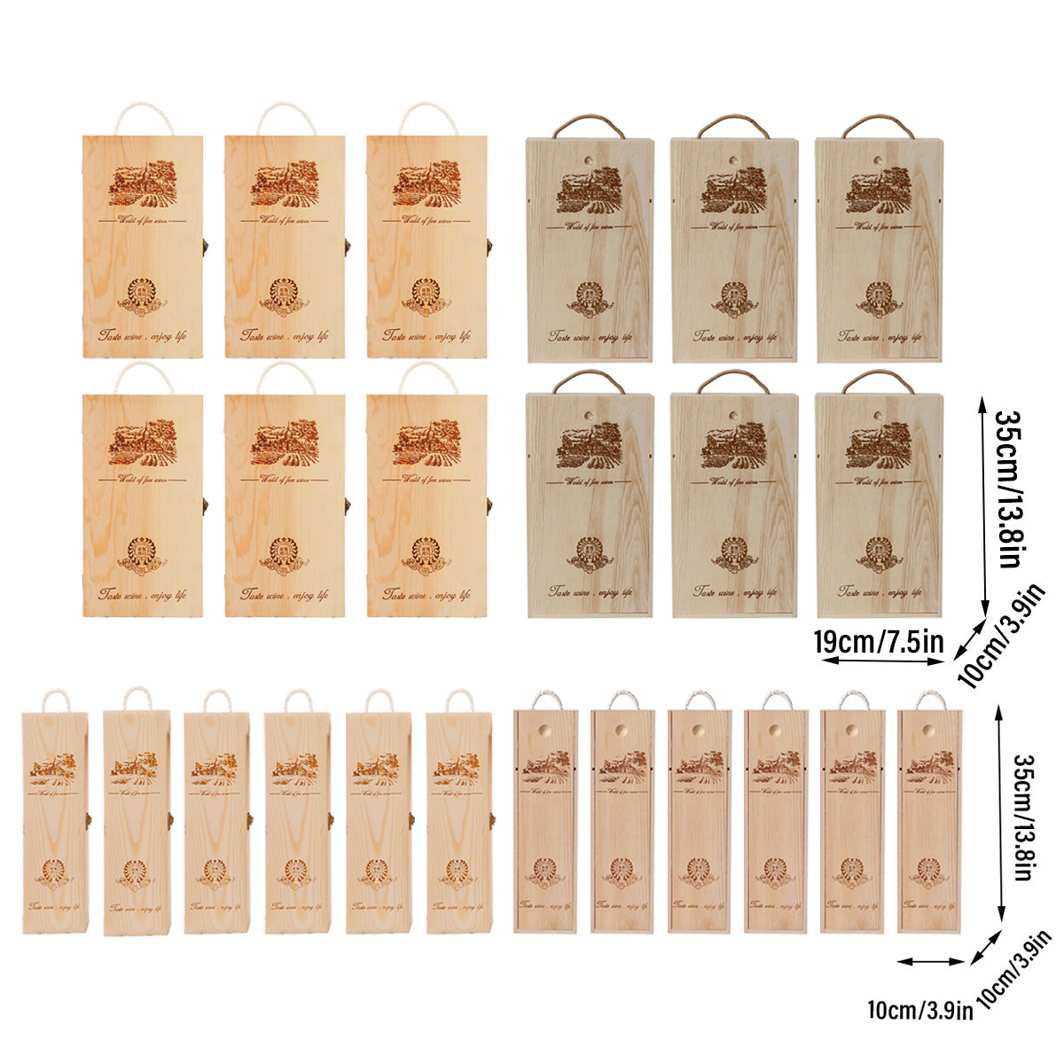 6pcs Red Wine Wooden Gift Box Packaging Storage Box for Wine Bottle Gifts – Double pull-out