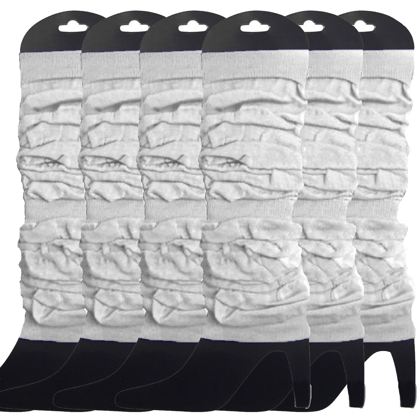 Product specifications include a pack of six pairs, with each pair approximately 40cm in length. They are made from soft, stretchy knit material to ensure a comfortable and flexible fit. These leg warmers are brand new and ready to wear.