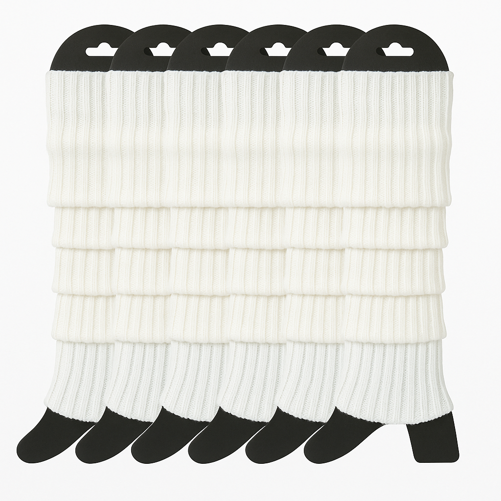 6x Womens Leg Warmers Disco Winter Knit Dance Party Crochet Legging Socks Costume – White