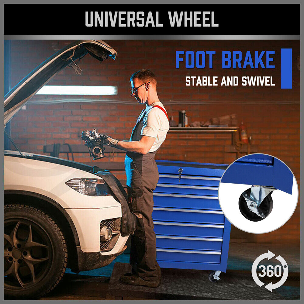 7-Drawer Drawer Tool Box Trolley Cabinet – Blue or Black Heavy Duty Tool Chest Garage Storage Cart Organizer