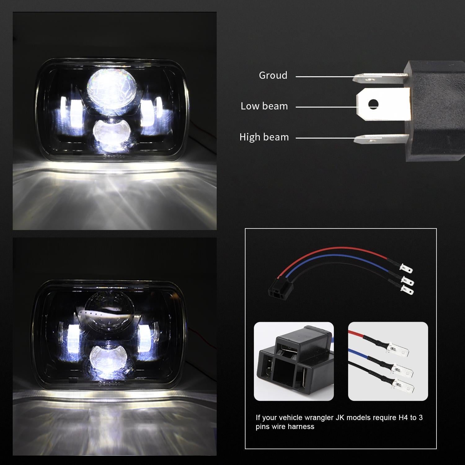 7 Inch 5X7 / 7X6 H4 Dc 9V – 30V 3500Lm 35W Car Square Shape Led Headlight Lamps For Jeep Wrangler