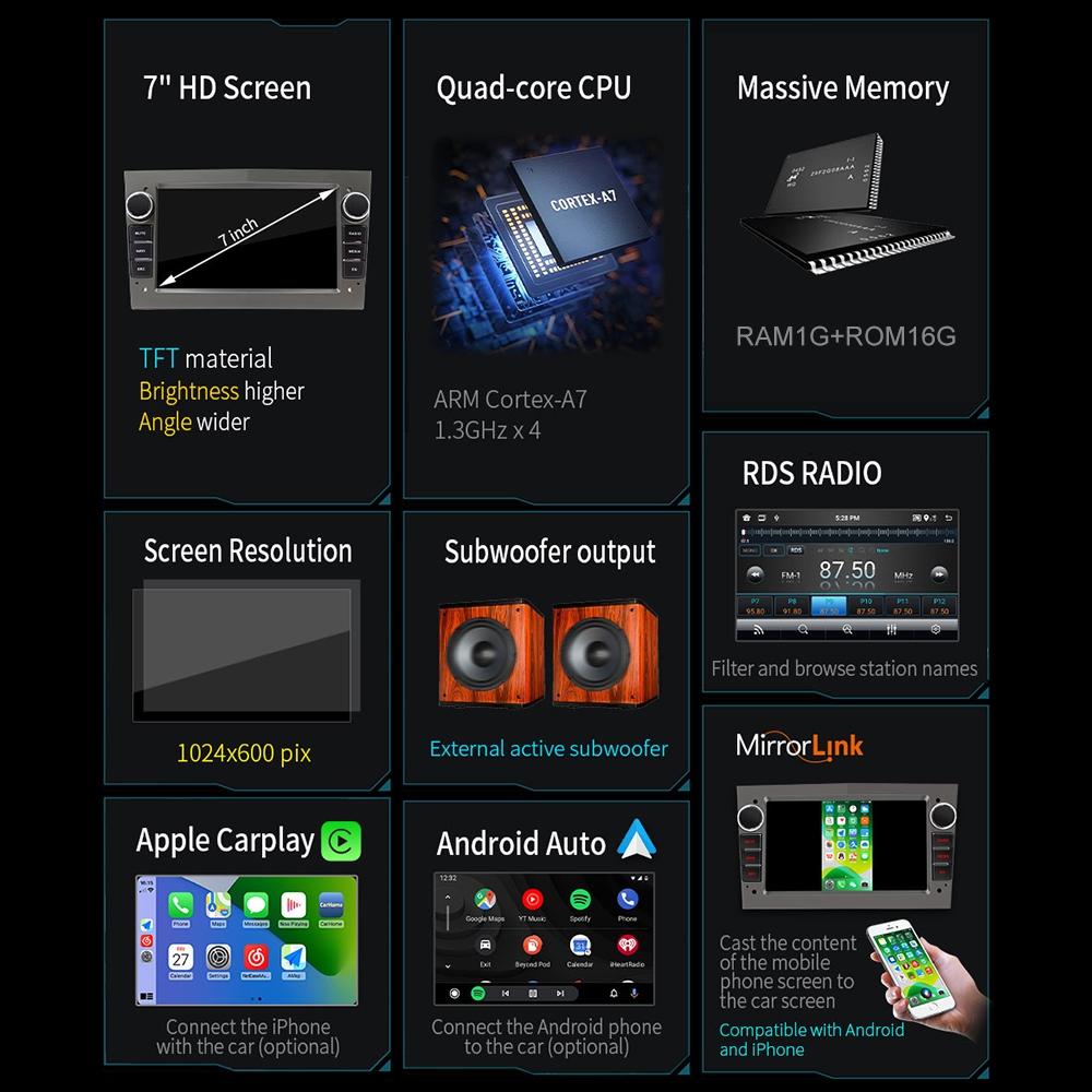 7 Inch Car Mp5 Player With Dab Function & Carplay / Android Auto For Opel – 1Gb + 16Gb – 1Gb + 16Gb Black