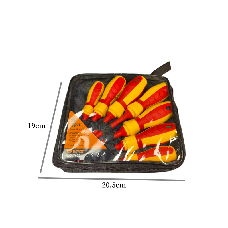 This 7-piece insulated screwdriver set is designed for electrical work and home repairs, providing a safe and reliable tool option. Made from durable materials and insulated to withstand up to 500V, it ensures safety during electrical tasks.