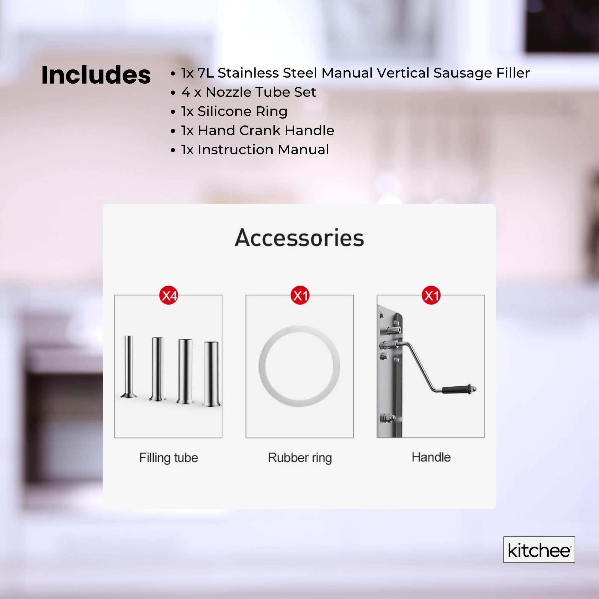 7L Manual Vertical Sausage Filler – Stainless Stuffer Meat Press Machine